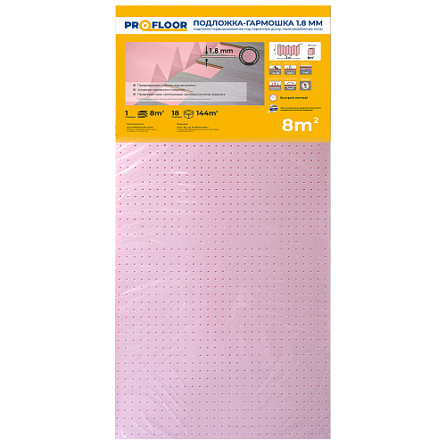 - Гармошка Profloor с пароизоляцией эффективно защищает основание пола от влаги и конденсата, продлевая срок службы покрытия. Благодаря высокой прочности и устойчивости к нагрузкам, она помогает гасить шумы и вибрации, улучшая акустику помещения.